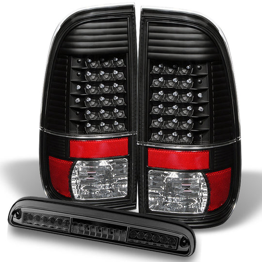 AKKON - For Ford F250/350/450/550 Pickup Truck Black LED Tail Lights Replacement + Smoked LED 3RD Brake Light