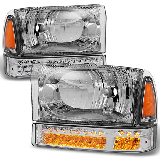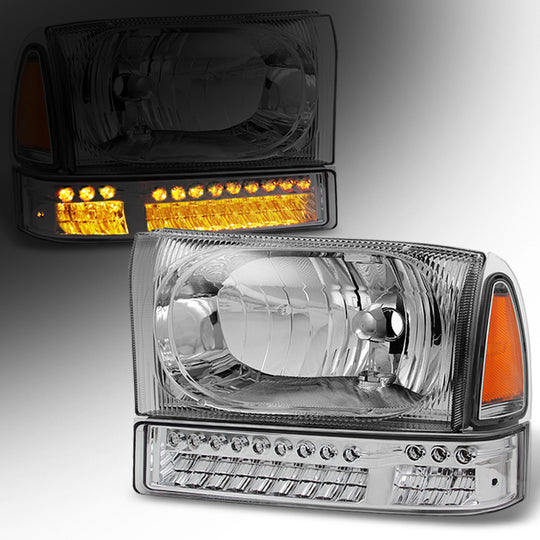 AKKON - For Ford F250 F350 F450 Superduty | Excursion Headlights With LED Bumper Signal Lights Replacement Pair