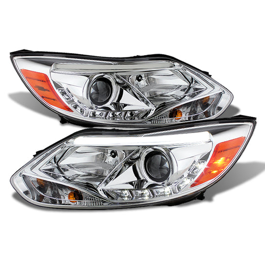 AKKON - For Ford Focus Chrome Clear Euro Spac Plug N Play Daylight LED Strip Projector Headlights Replacement