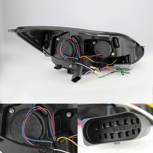 AKKON - For Ford Focus Black Bezel Euro Spac Plug N Play Daylight LED Strip Projector Headlights Replacement