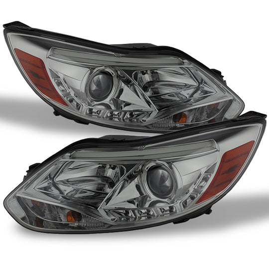 AKKON - For Ford Focus Smoked Smoke DRL Daylight LED Strip w/ LED Design Projector Headlights Front Lamps Pair