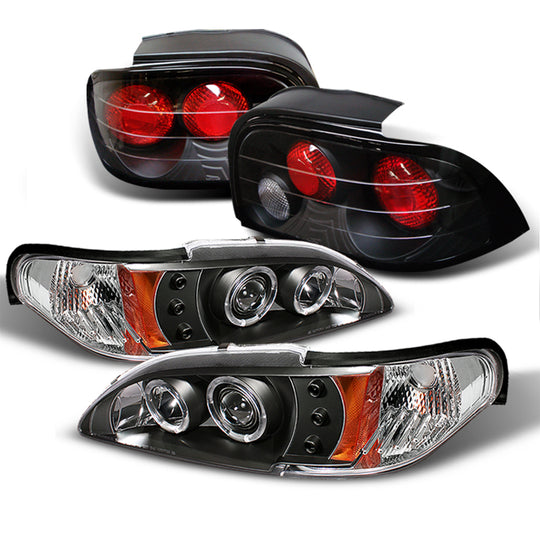 AKKON - For Ford Mustang Coupe Black Bezel Halo Ring 1pc Design Projector Headlights w/ Corner Signal + Tail Lamps