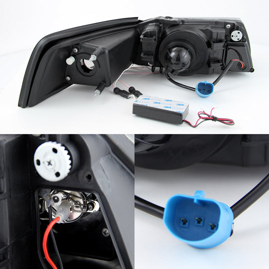 AKKON - For Ford Mustang Coupe Black Bezel Halo Ring 1pc Design Projector Headlights w/ Corner Signal Lamps