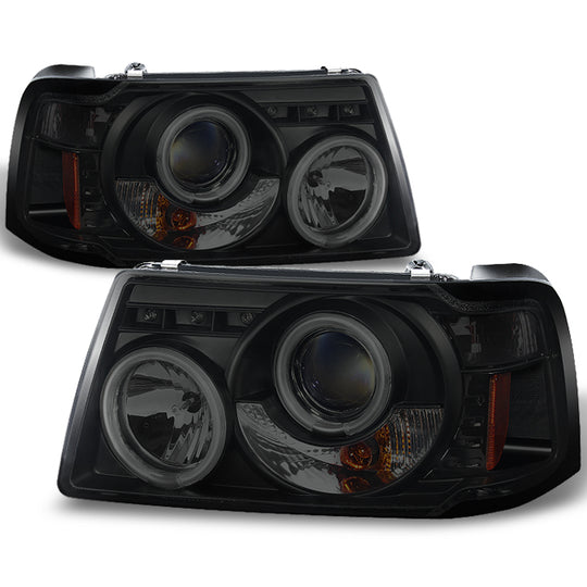 AKKON - For Ford Mustang Coupe Black Smoke CCFL Halo 2 in 1 Design Projector Headlights w/ Corner Signal Lamps