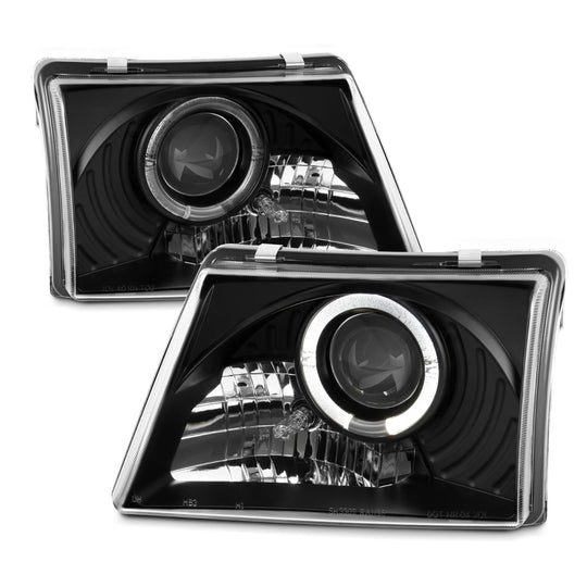 AKKON - For Ford Ranger Pickup Black Bezel Halo Ring Design Projector Headlights Replacement Pair Left + Right