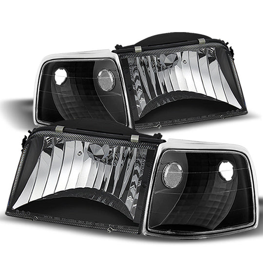 AKKON - For Ford Ranger Pickup Truck Black Replacement Headlights + Corner Signal Lamps Left+Right Combo