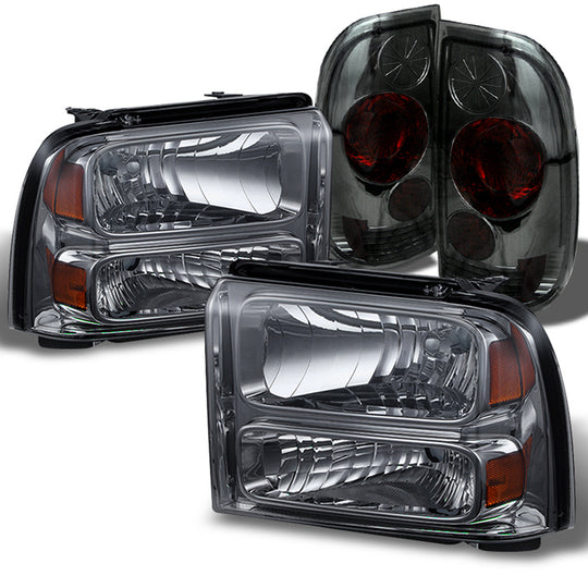 AKKON - For Ford Pickup Truck F-250 F-350 F-450 F-550 Super Duty Smoked Headlights + Smoked Tail Brake Lamps