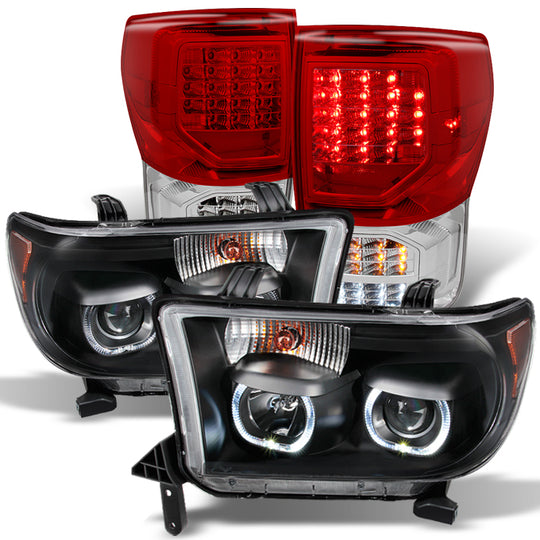 Regular price $349.99This is a 100% brand new pair of Replacement Headlights & Tail Lights with the housing: Headlights: Black Housing, Tail Lights: Red Clear And It Fits 07-13 Toyota Tundra Without Level Adjuster Model, 08-16 Toyota Sequoia...