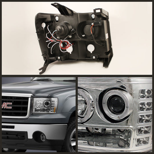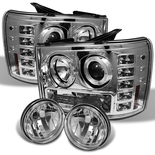 AKKON - For GMC Sierra 1500 2500 3500 HD Denali Chrome Halo Projector LED Headlights + Fog Lights Lamps W/Bulbs