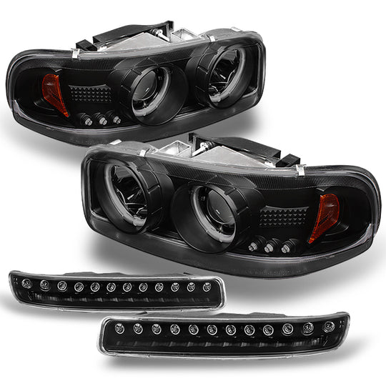 AKKON - For GMC Sierra Yukon CCFL Halo Projector Headlights Lamps + LED Bumper Signal Lights Replacement Combo