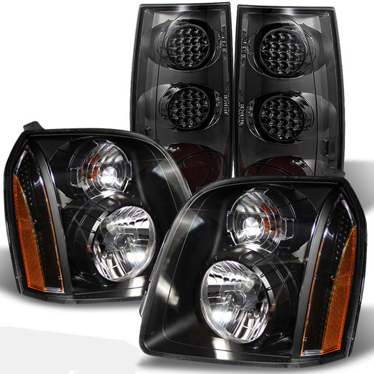 AKKON - For GMC Yukon / XL / Hybrid Black Headlights Pair Set + Smoke LED Tail Lights Combo Replacement Set