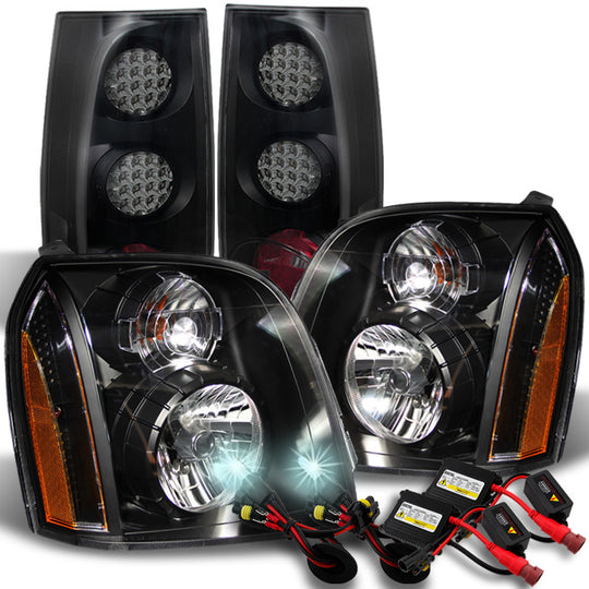 AKKON - For GMC Yukon / XL / Denali Black Headlights Pair + Black Smoke LED Tail Lights + Slim 8000K HID Kit