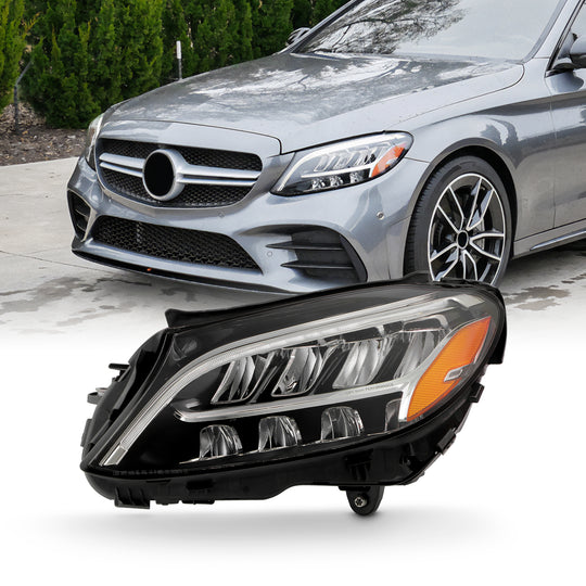 AKKON - Fit 2019 2020 2021 Mereceds Benz W205 19-21 C300 C43 AMG Full LED Non-AFS Projector Headlight Headlamp OE Style Driver Left Side Direct Replacement
