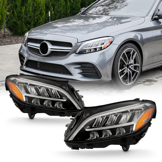 AKKON - Fit 2019 2020 2021 Mereceds Benz W205 19-21 C300 C43 AMG Full LED Non-AFS Projector Headlight Headlamp OE Style Driver - Passenger Direct Replacement