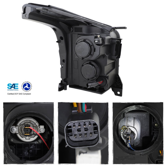 Regular price $389.99This is a 100% brand new pair of Headlights Replacement Assemblies in Midnight Black Housing with Clear Lens + 6000K HID Kit, Fog Lights in Chrome Housing with Clear Lens Compatible With: 2015-2018 GMC Yukon /... -