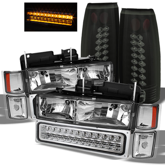 AKKON - For GMC Yukon Sierra |Chevy C 1500/2500/3500 Clear Headlight+ Black Smoked LED Tail Light+ LED Bumper