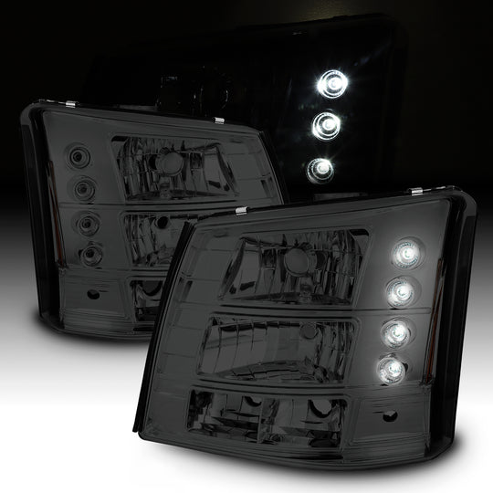AKKON - For GMT800 Chevy Silverado | Tahoe | GMC Suburban Pickup Truck 1PC Smoked Lens Headlights Assembly