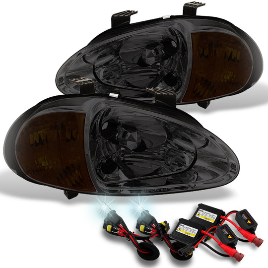 AKKON - For Honda 93-97 Del Sol Smoked 1Pc Amber Headlights w/Corner Light + Slim 6000K HID Xenon Kit
