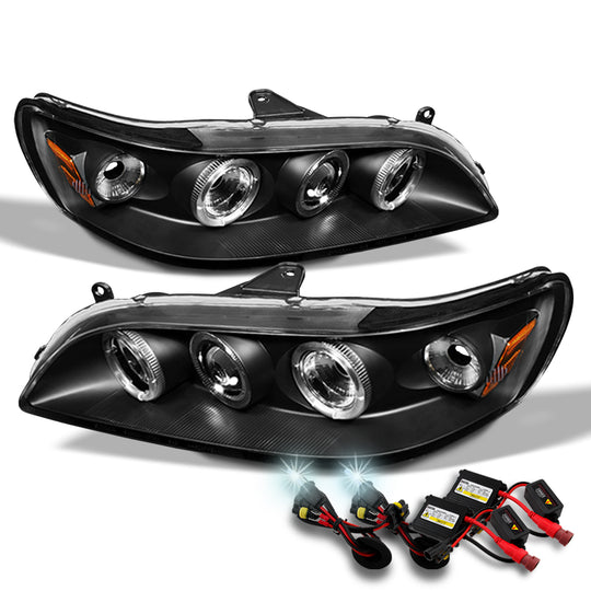AKKON - For Honda Accord Black Bezel Dual Halo Projector Headlights Driver Passenger Replacement+6000K HID