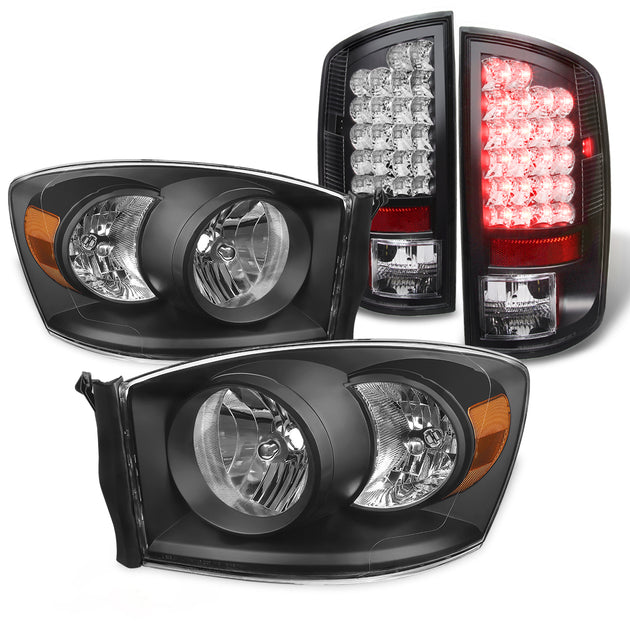 AKKON - Fits 2007-2008 Dodge Ram 1500 2007-2009 Ram 2500 / 3500 Black Headlights + Lumiled LED Blk Tail Lamp Pair Left+Right