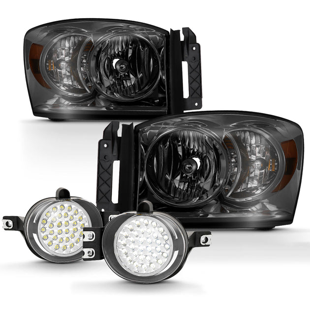 AKKON - Fits 2007-2008 Dodge Ram 1500 2007-2009 Ram 2500 / 3500 Smoked Headlights + LED Bumper Chrome Clear Fog Lights Pair