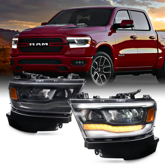 Regular price $448.99This is a 100% brand new pair of Replacement Headlights in Black Housing with Clear Lens Compatible With: 2019-2022 Ram 1500 w/ Halogen Upgrade Type Headlight Models ATTN: Compatible w/ Halogen Upgrade Type Headlight Models Only... -