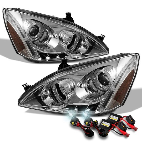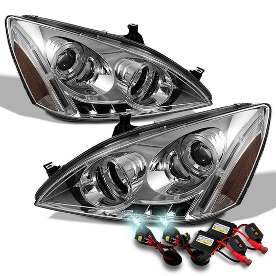 AKKON - For Honda Accord Chrome Clear Dual Halo Ring DRL LED Projector Headlights Front Lamps+6000K HID