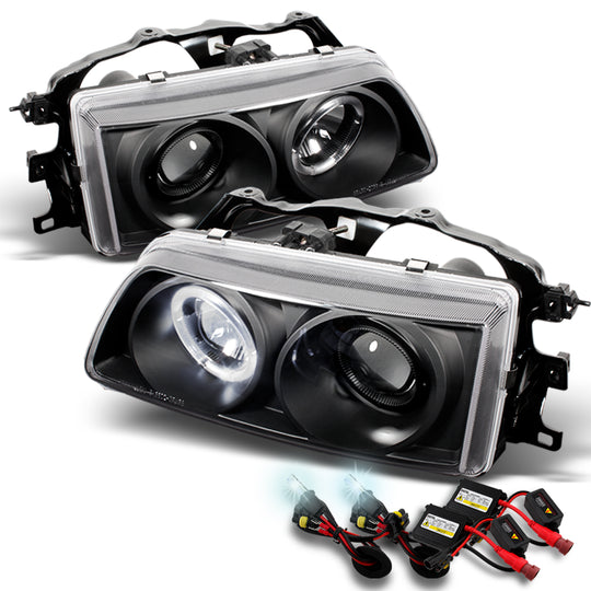 AKKON - For Honda Civic Black Bezel Dual Halo Ring Projector Headlights HeadLamps Left/Right Pair+6000K HID