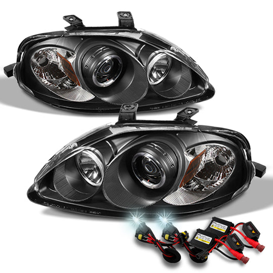 AKKON - For Honda Civic Black Bezel Halo Ring Projector Headlights Replacement Left + Right + 6000K HID