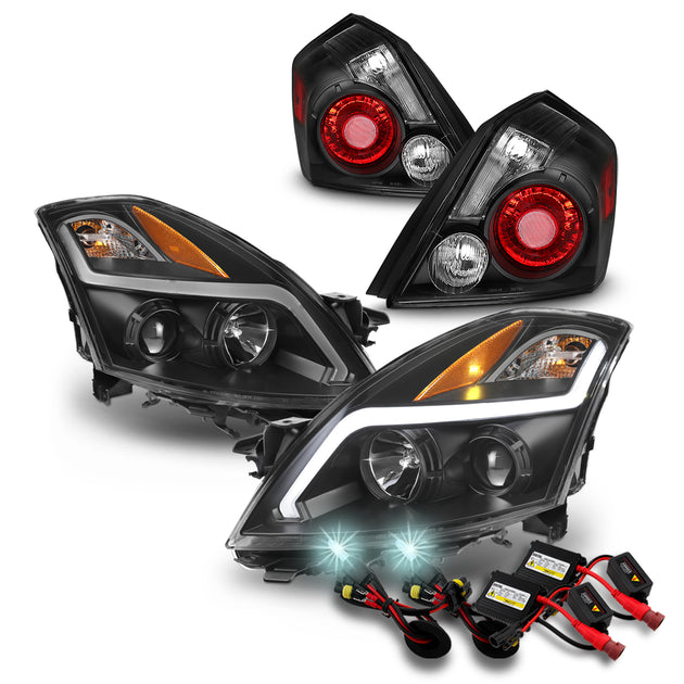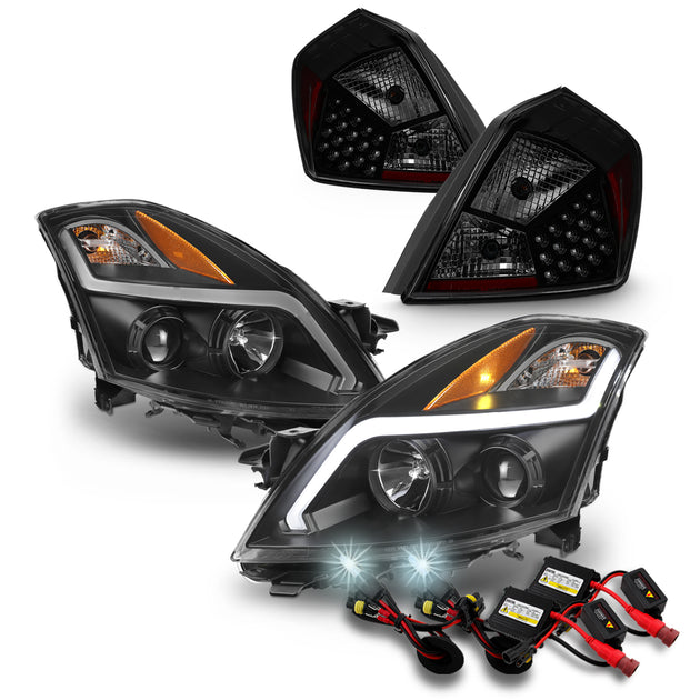 AKKON - Fits 2007-2009 Nissan Altima Sedan LED Light Tube Projector Headlights & Smoked Tail Lights w/ 8000K HID