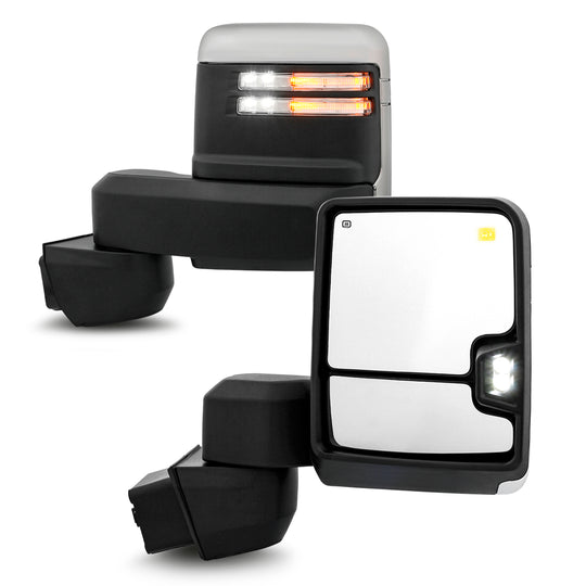 Regular price $162.99SKU: M9CSI19PHTBSSMB This is a 100% brand new replacement pair of Towing Mirrors Assembly Compatible With: 2019-2023 Chevy Silverado 1500 Features: Build-in LED Turn Signal Lamp Made with Superior Reinforcement ABS Plastic. Powered Adjustment. Power operated... -