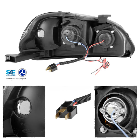 AKKON - For Honda Civic Smoekd Smoke Dual Halo Ring Projector Headlights Head Lamps Replacement Left/Right Pair