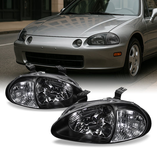Regular price $115.99This is a 100% brand new pair of Headlights Replacement Assemblies in Midnight Black Housing With Crystal Clear Lens Compatible With: 93-97 Honda Del Sol All Models Manufacturer Part Number: HO2502124_93 94 95 96 97,33150SR2A01, 33100SR2A01,33150SR2A02,... -