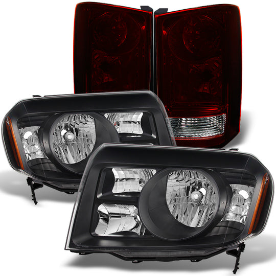 AKKON - For Honda Pilot Black Headlights Set + Dark Red Tail Lights Left & Right Both Side Replacement Pair Set