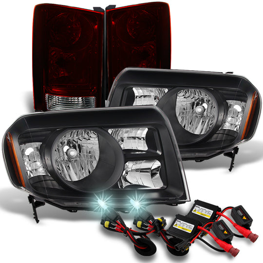 AKKON - For Honda Pilot Black Headlights Set + Dark Red Tail Lights Tail Lamps Replacement Pair + Slim 8000K HID