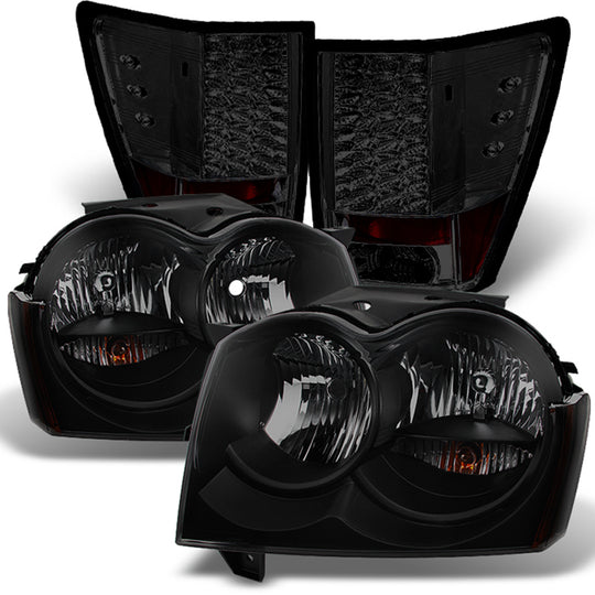 AKKON - For Jeep 05-06 Grand Cherokee Black Smoked Headlights + LED Smoked Tail Light Brake Lamps