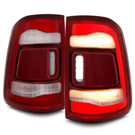 AKKON - Fit 2019-2023 Dodge Ram 1500 Limited / LongHorn / Laramie [Not-Included Blind Spot Sensor] LED Tail Light OE Style Red Clear Pair
