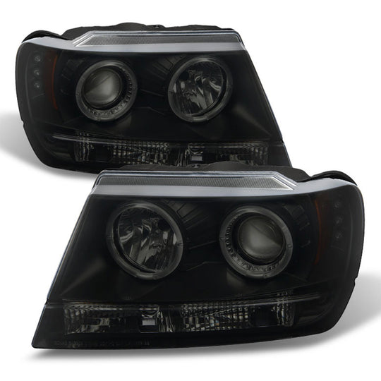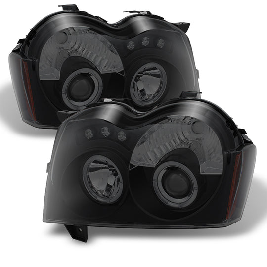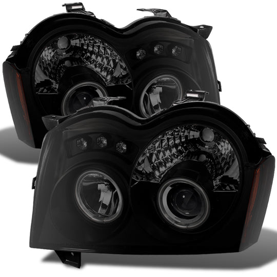 AKKON - For Jeep Grand Cherokee Black Smoked Dual CCFL Halo Ring Projector LED Headlights Replacement Pair