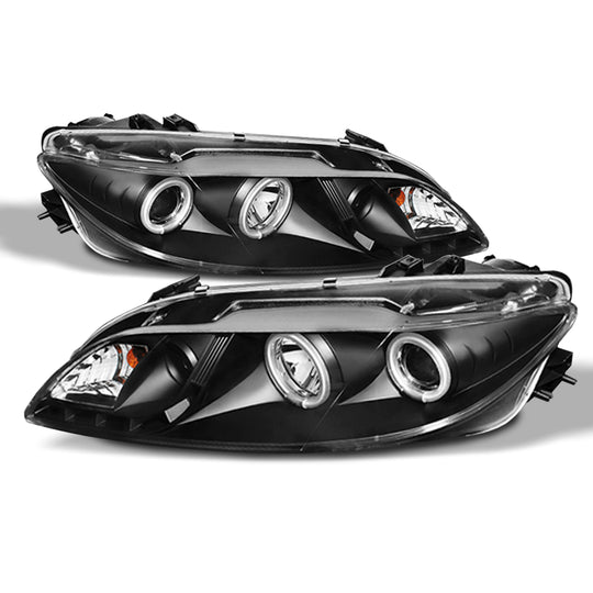 AKKON - For Mazda 6 Black Bezel Dual Halo Ring Projector DRL LED Replacement Headlights w/Built-in Fog Light