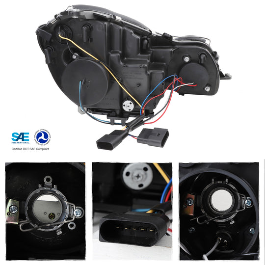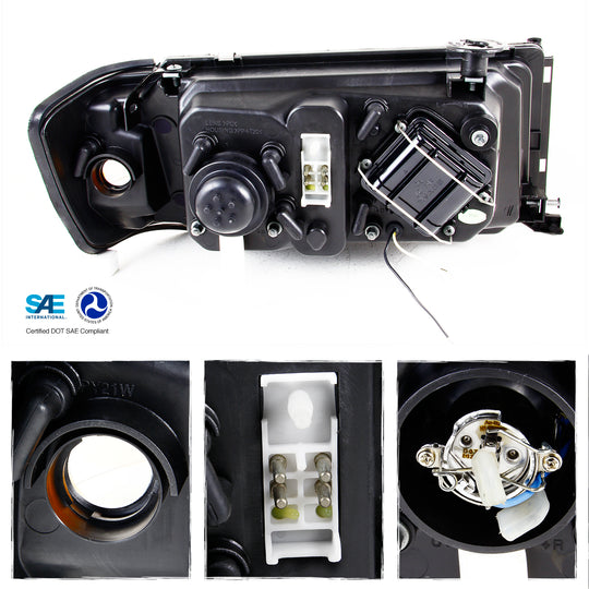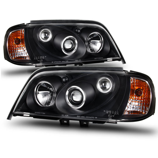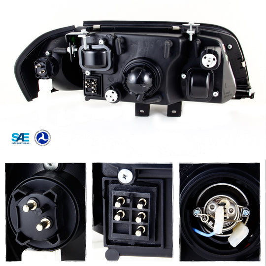 AKKON - For Mercedes Benz W202 C-Class Black Bezel Dual Projector Halogen Type Projector Headlights Lamps Pair