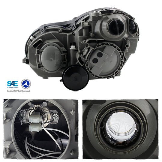 AKKON - For Mercedes Benz W211 E-Class Sedan Black Bezel Halogen Type Projector Headlights Lamps Replacement