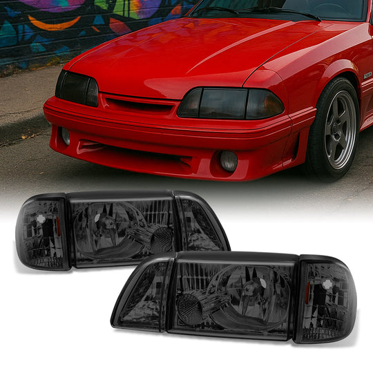 AKKON - For Mustang Smoked Headlights Headlamps w/ Corner & Parking Lights 6Pcs Complete Replacement Pair Set