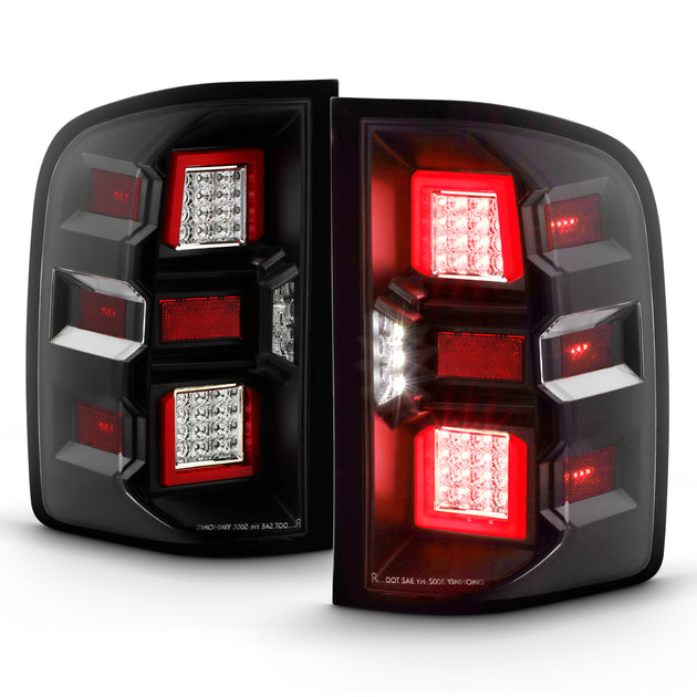 AKKON - Fits 2007-2013 Chevy Silverado 1500 2500HD 3500HD [Full LED] Tube Signal Reverse parking Black Tail Lights Pair