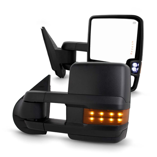 AKKON - Fits 2007-2013 Chevy Silverado GMC Sierra 1500 2500HD 3500HD Power Fold w/LED Turn Signal Heated Black Mirrors Powered Glass Telescoping Blind Spot