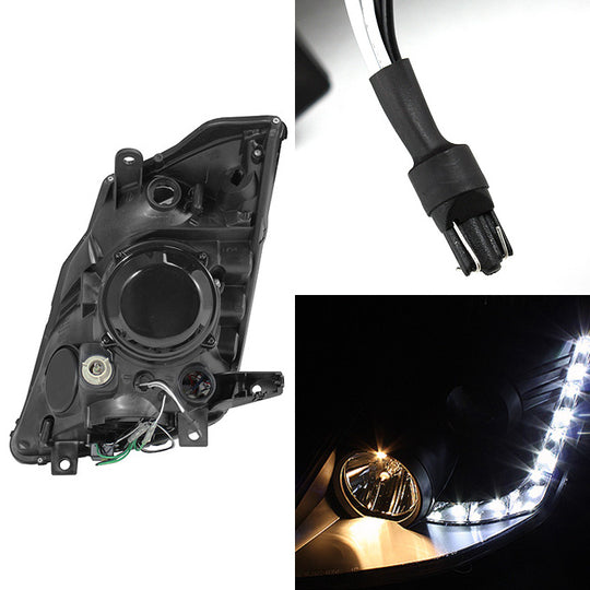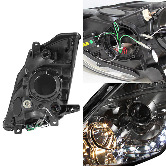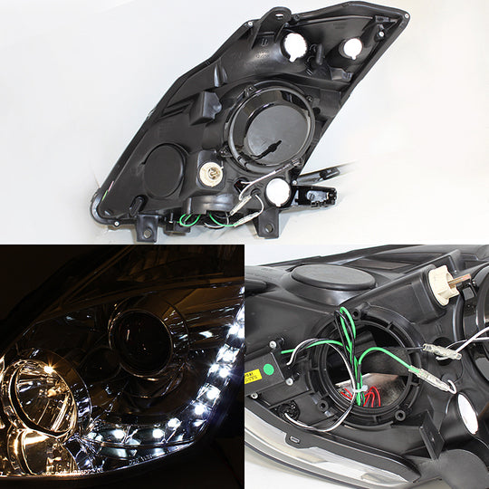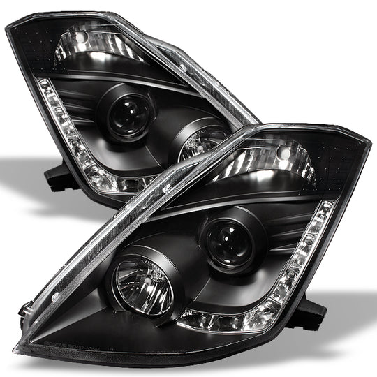 AKKON - For Nissan 350Z Fairlady Z33 Black Bezel DRL Daylight LED Strip Halogen Type Projector Headlights Pair