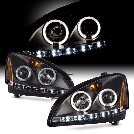 AKKON - For Nissan Altima Black Bezel Dual Halo Ring DRL Daylight LED Strip Projector Headlights