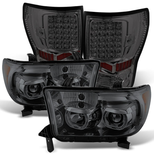 AKKON - For Pickup Truck Tundra 07-13 Dual Halo Smoked Headlights + LED Smoke Tail Lights Brake Lamp