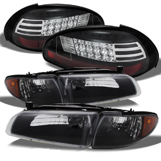 AKKON - For Ponitac Grand Prix Black Bezel Headlights Lamps Replacement + LED Black Tail Lights Brake Lamp Combo