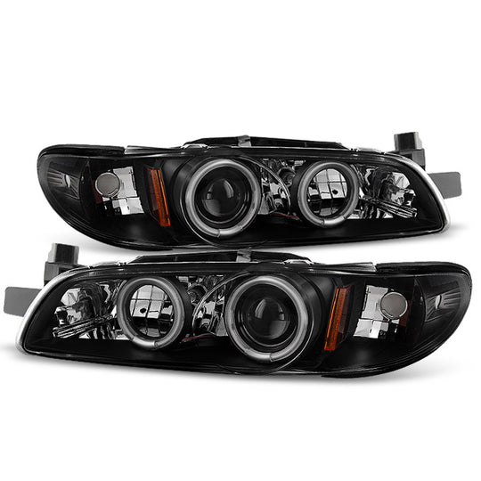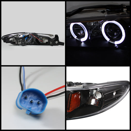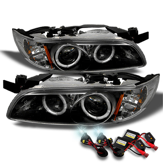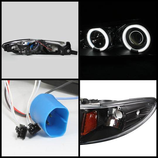 AKKON - For Pontiac Grand Prix Black Bezel Dual CCFL Halo Projector Replacement Headlights Front Lamps Pair Set