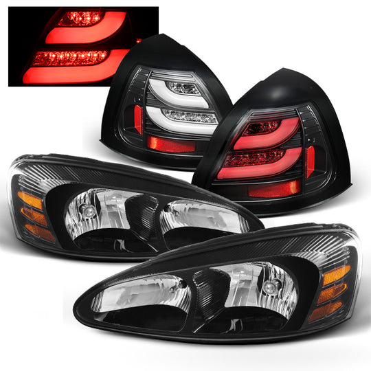 AKKON - For Pontiac Grand Prix Black Bezel Headlights Replacement+LED Black Tail Lights Left+Right Lamps Combo